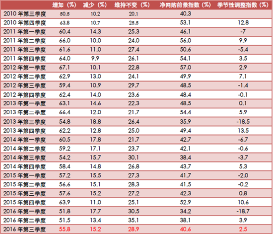 圖表2:2016Q3區(qū)域間比較凈網購前景指數(shù)圖