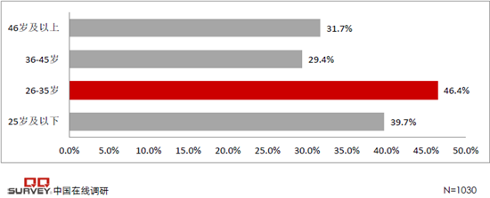 參與調查的各年齡段網購消費者們預期在2016Q3網購消費金額,26-35歲網購消費者的凈網購前景最為樂觀,網購消費者的凈網購預期前景指數(shù)達+46.4%。25歲以下網購消費者的凈網購預期前緊追26-35歲網購消費者,網購消費者的凈網購前景指數(shù)為+39.7%。46歲以上網購消費者的凈網購前景指數(shù)為+31.7%。36-45歲網購消費者的凈網購前景指數(shù)為+29.4%。