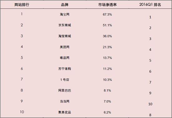 2016Q2購物網站排名