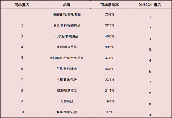 圖表15:2016Q2購買產品排行榜圖表