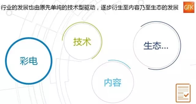 回首過往,中國彩電行業(yè)在經(jīng)歷了2006至2008年平板電視對顯像管電視的替換后,正進(jìn)入一波新的周期, 與以往只有日韓品牌可供選擇的寡頭壟斷時期相比,渠道的變革、消費者習(xí)慣的改變、盈利模式的創(chuàng)新使現(xiàn)今的彩電行業(yè)進(jìn)入了“群雄逐鹿”的年代,促銷的常態(tài)化導(dǎo)致市場呈現(xiàn)出旺季不旺、淡季不淡的特點,在價格競爭越發(fā)激烈,產(chǎn)品同質(zhì)化日益嚴(yán)重的背景下, 整個行業(yè)的發(fā)展也由原先單純的技術(shù)型驅(qū)動,逐步衍生出兩大新的趨勢:內(nèi)容和生態(tài),來以此尋求新的突破。