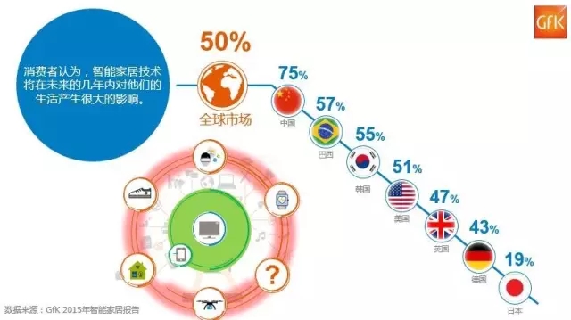 根據(jù)GfK全球智能家居調(diào)研報告顯示,中國有75%的消費者認(rèn)為,智能機(jī)家居技術(shù)將在未來的幾年內(nèi)對他們的生活產(chǎn)生很大的影響,遠(yuǎn)高于全球平均水平。這也從另一個角度反映了消費者對這一趨勢的向往和追求。