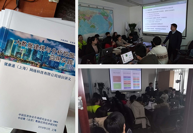 2018年3月10日——12日,應健康通(上海)網(wǎng)絡科技有限公司邀請,CMRA創(chuàng)新發(fā)展部與中經(jīng)數(shù)(北京)數(shù)據(jù)應用技術研究院和中科院研究所的專家為該企業(yè)設計了“大數(shù)據(jù)建模與分析挖掘應用實踐”課程,培訓地點位于健康通(上海)網(wǎng)絡科技有限公司會議室,參加現(xiàn)場培訓的職員30多人,同時開通在線直播,北京、大連、美國、韓國、日本、荷蘭多地員工共同參加培訓學習。
