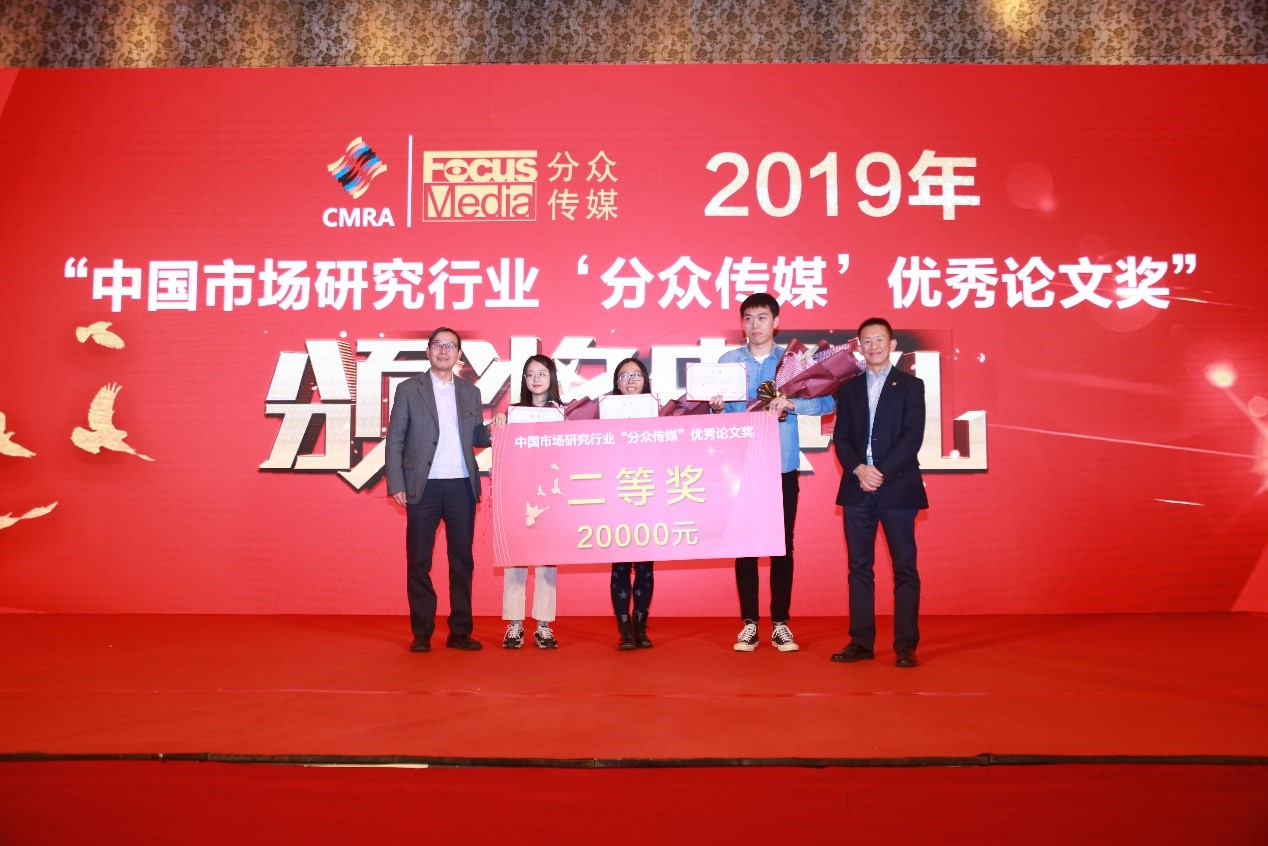‘分眾傳媒’優(yōu)秀論文一、二、三等獎的選手頒發(fā)了榮譽(yù)證書、鮮花和獎金。