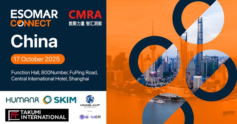 ESOMAR與CMRA誠邀您加入本次上海站活動:在兼具深度與啟發(fā)性的行業(yè)探討中,掌握出海洞察的核心方法論;同時與全球行業(yè)同仁面對面交流,拓展高質(zhì)量人脈網(wǎng)絡(luò)、搭建合作橋梁,為企業(yè)出海布局與個人職業(yè)發(fā)展儲備關(guān)鍵資源。